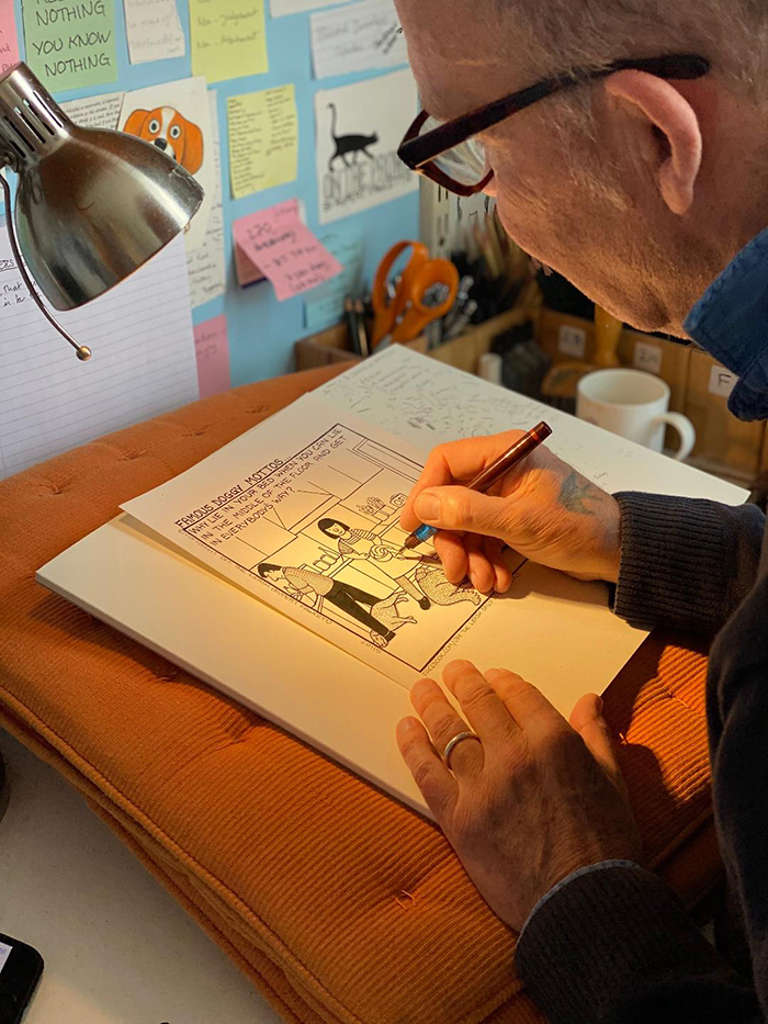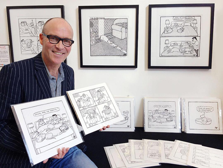 RUPERT: I had a very productive three years of producing Off the Leash cartoons at the beginning but as I have other commitments I now only draw new ones sporadically. As soon as I have finished one I post it which is the great thing about social media for a cartoonist, it is so instant, from the drawing board to the worldwide audience in seconds!