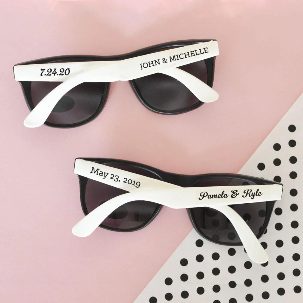 If the couple has a specific wedding theme or even a logo (for example, if they have a wedding hashtag), custom sunglasses can be branded to match. It’s a great way to tie everything together visually.